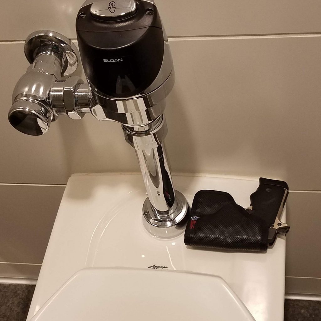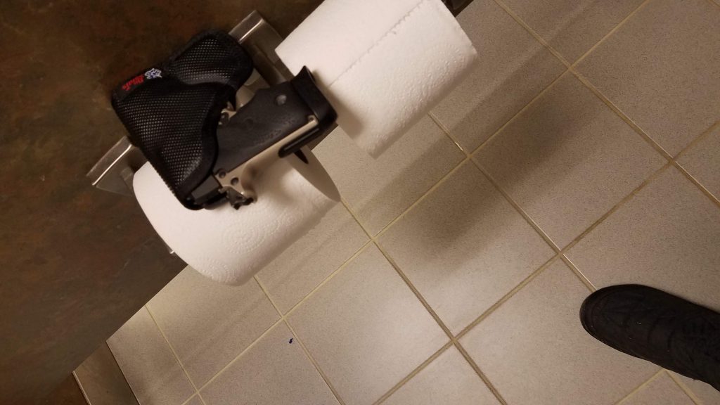 Concealed carry is a lifestyle change. “Taking care of business” in public restrooms can be awkward; but hopefully with planning ahead you can steer clear of any troubles.