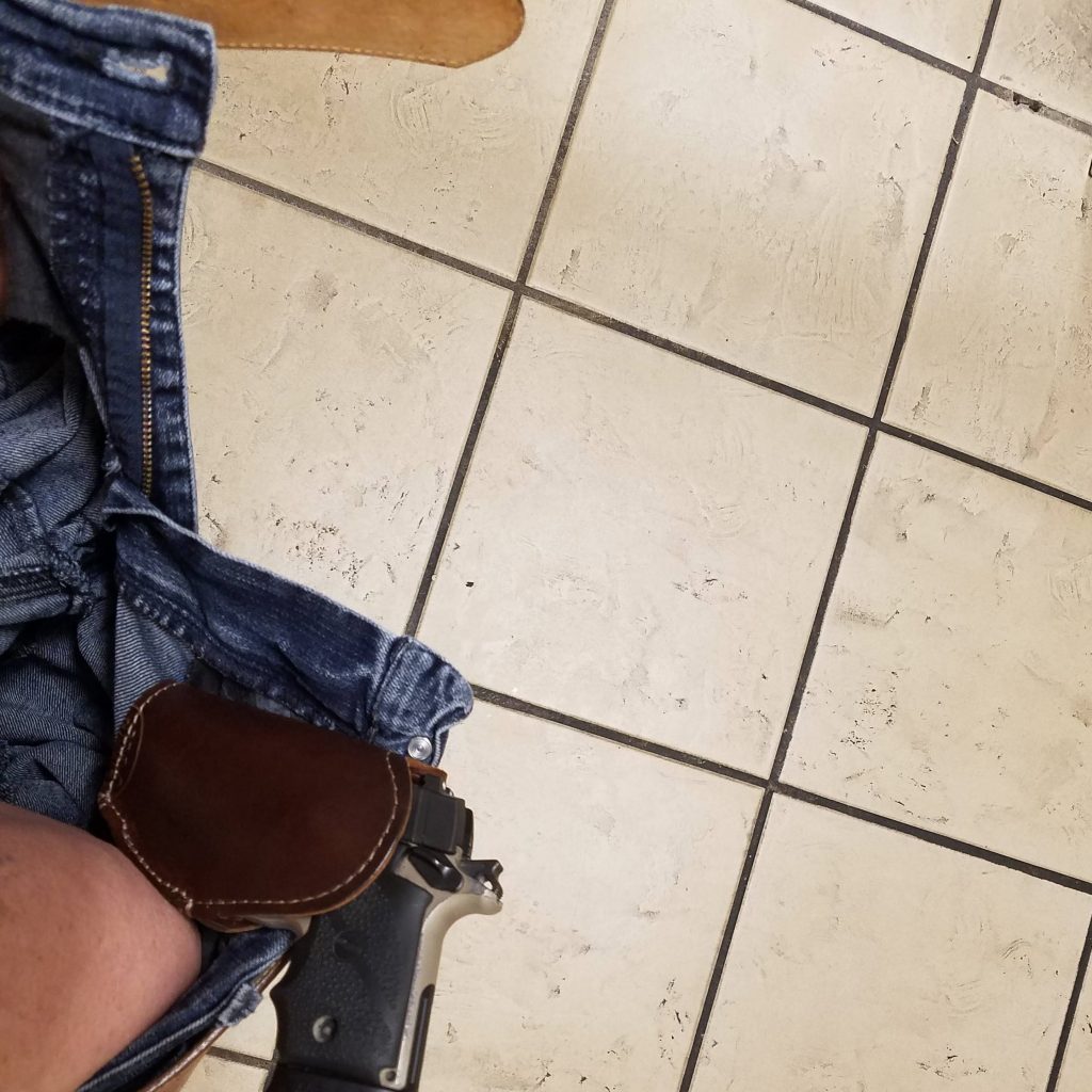Of course, I wasn’t using one that went through my belt (like the two on the left in the photo above). I was using an IWB (Inside the Waistband holster).
