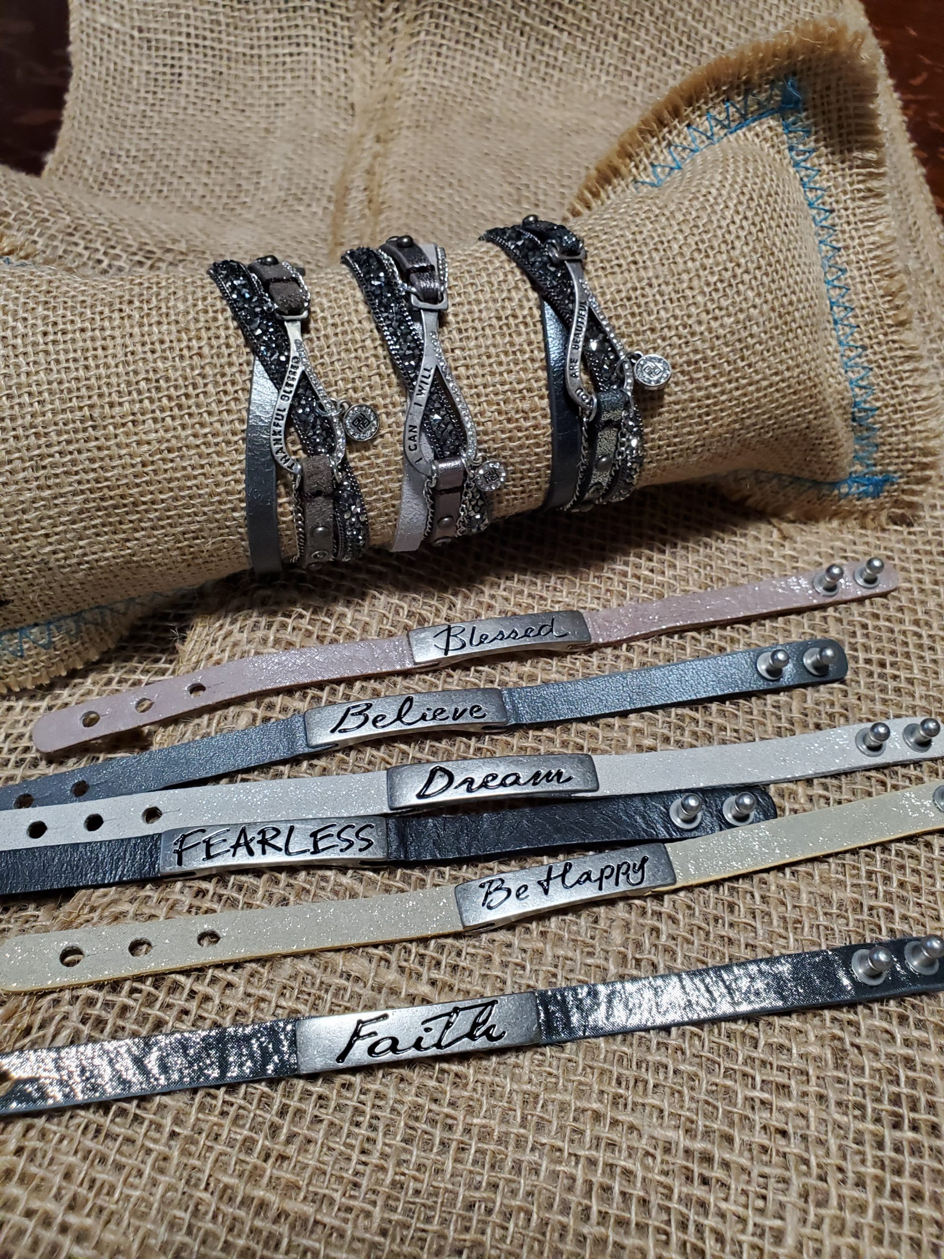 Pick one or all of the Three sayings – “I can, I will”, “Thankful Blessed”, “You are beautiful”. These bracelets are sure to make a statement.